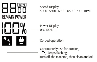 Speed adjustment button :5000 - 5500 - 6000 - 6500 - 7000 RPM
