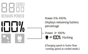 POWER DISPLAY ON CORDLESS MODE